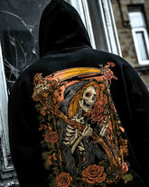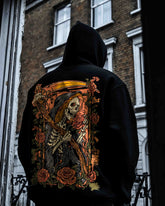 This hoodie shows how beauty can grow even from the darkest places. The reaper surrounded by roses feels calm, not cruel — like he’s seen it all and learned to find peace in it. Bloom is about change, endings that turn into new beginnings, and the strange calm that comes with accepting both. It’s dark, but honest — just like life.