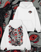 This hoodie hits that feeling of being seen even when no one’s there. Eyes twist and multiply, watching from every angle — it’s chaotic, messy, and impossible to ignore. Paranoia captures that wired, anxious energy that lives under your skin when your thoughts won’t shut up. It’s loud, it’s raw, and it’s for the nights when you can’t tell if the danger’s real or just in your head.