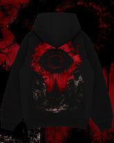 This hoodie feels like being watched by something bigger than you. The bleeding red eye over the city says it all — there’s no hiding, no pretending. Surveillance is about paranoia, awareness, and facing the truth when it stares right back. It’s eerie, bold, and made for those who live with eyes open, even when it burns.